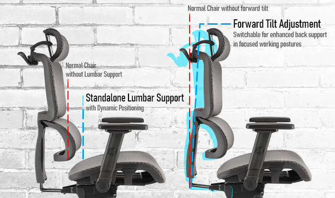 In addition to existing design and reclining angle of every normal ergonomic chair, the backrest of the T07 Plus now includes a forward tilt angle, offering a more comfortable seated posture for concentrated working and expanding your comfort experience in various scenarios.