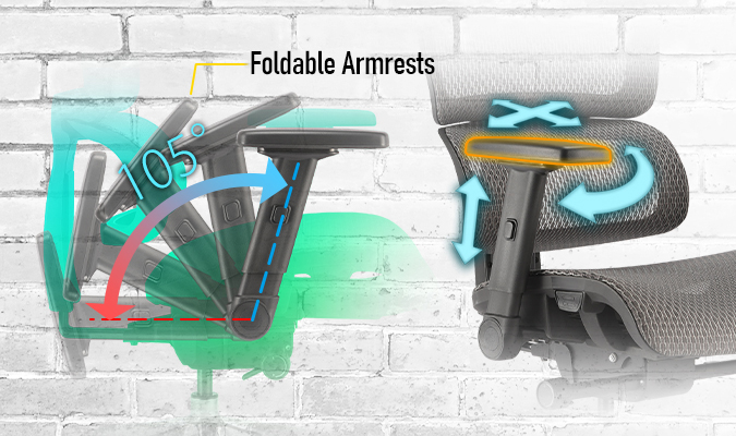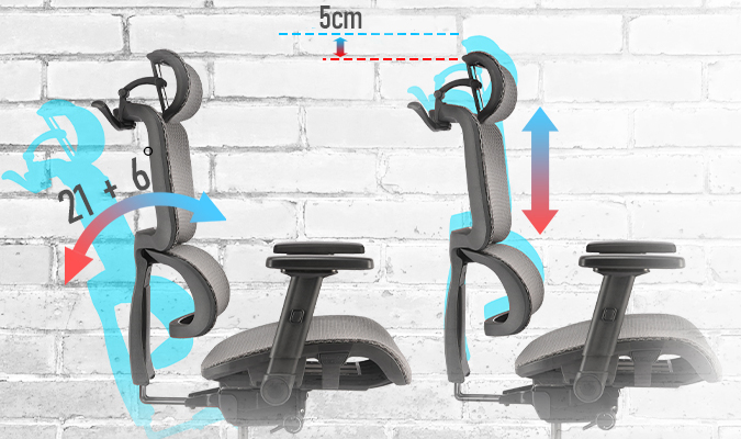 Featuring 2 adjustment mechanisms, the headrest significantly expands its range of supporting, enabling precise support for your head or neck, ensuring a more comfortable seating experience.