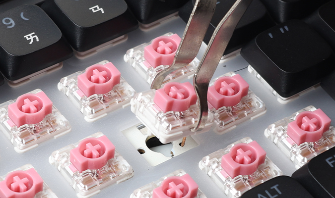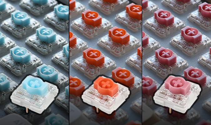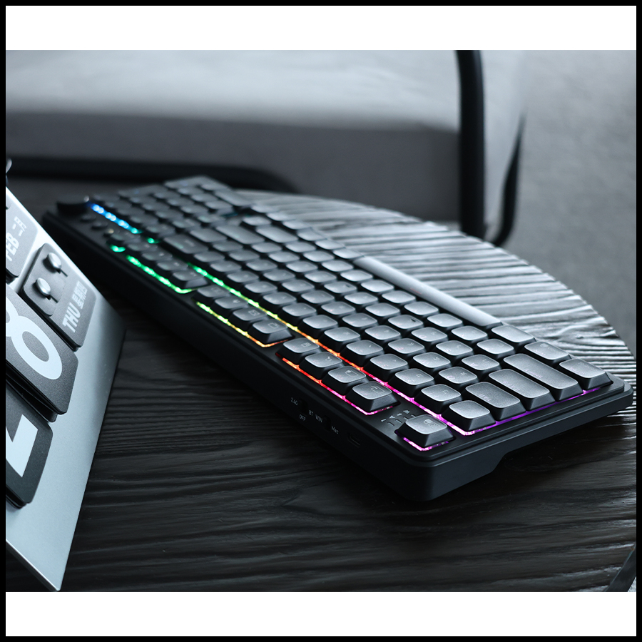 Custom pre-lubed low-profile switches, Shorter travel for faster response, delivering a smooth and stable keystroke experience.