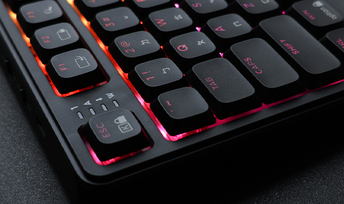 The low-profile switch structure offers a shorter travel distance, delivering instant feedback and superior typing speed and accuracy.