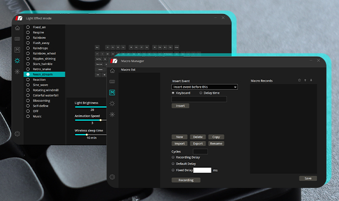 Master Your Setup with Ease From rapid lighting edits to advanced macros and shortcuts. Fully customizable Main/Fn layers and Music Rhythm modes—built to sync with your creative flow.
