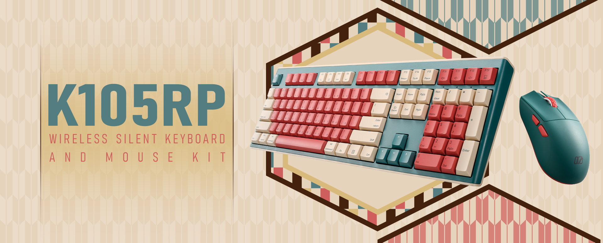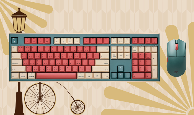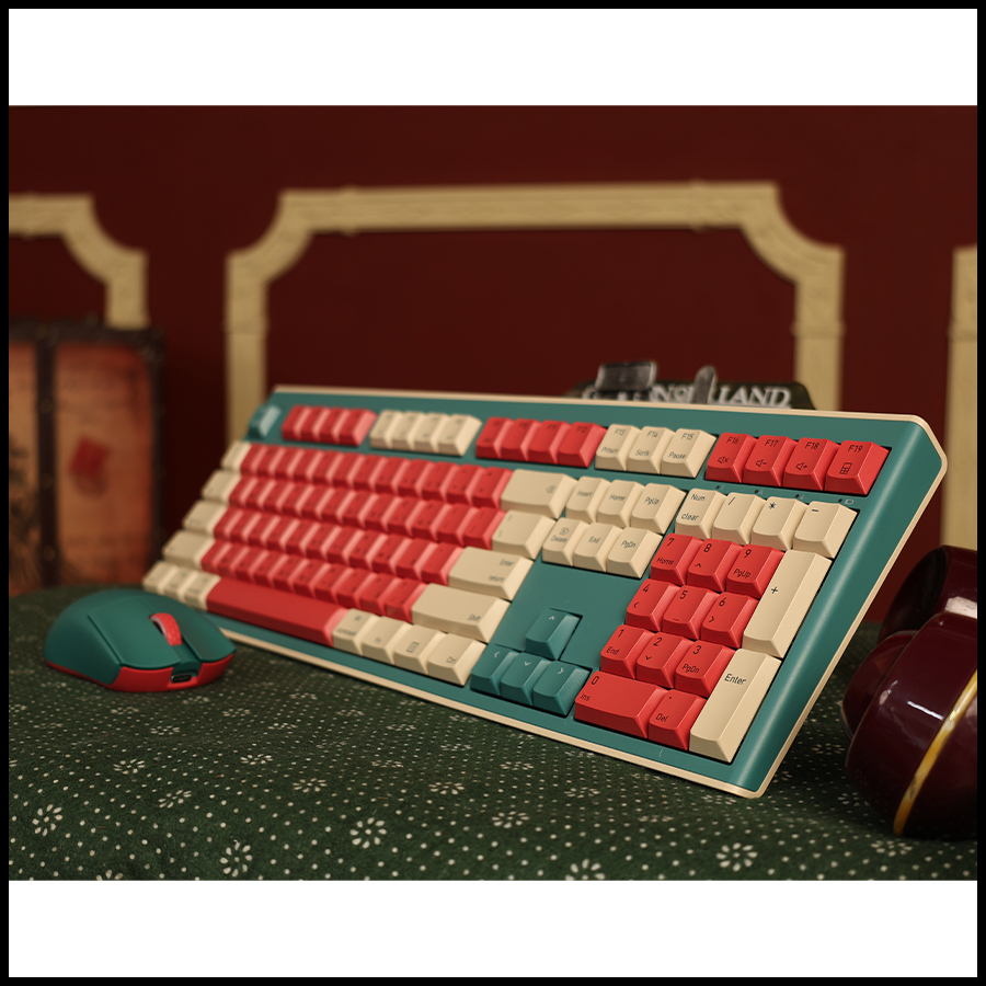 Red, Beige, and Teal. A bold design that blends vintage charm with modern style. It's the perfect way to make your desktop setup look unique and full of character.