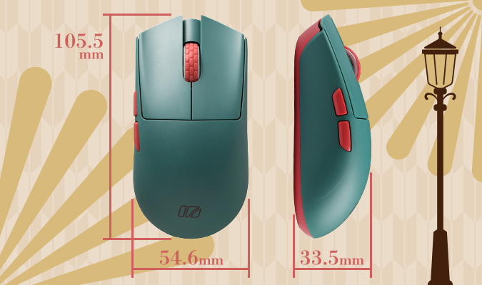 - Mouse Dimensions: 105.5(L) × 54.6(W) × 33.5(H) mm