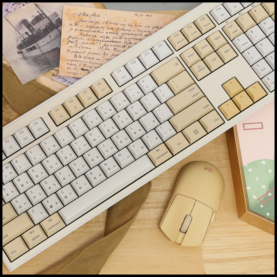 Featuring a refined blend of off-white, pure white, and gold embellishments, this vintage colorway exudes classic elegance. It offers a full-size layout without compromising on style—the perfect choice for users seeking a unique, high-quality typing experience.