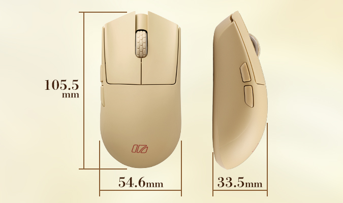 - Mouse Dimensions: 105.5(L) × 54.6(W) × 33.5(H) mm
