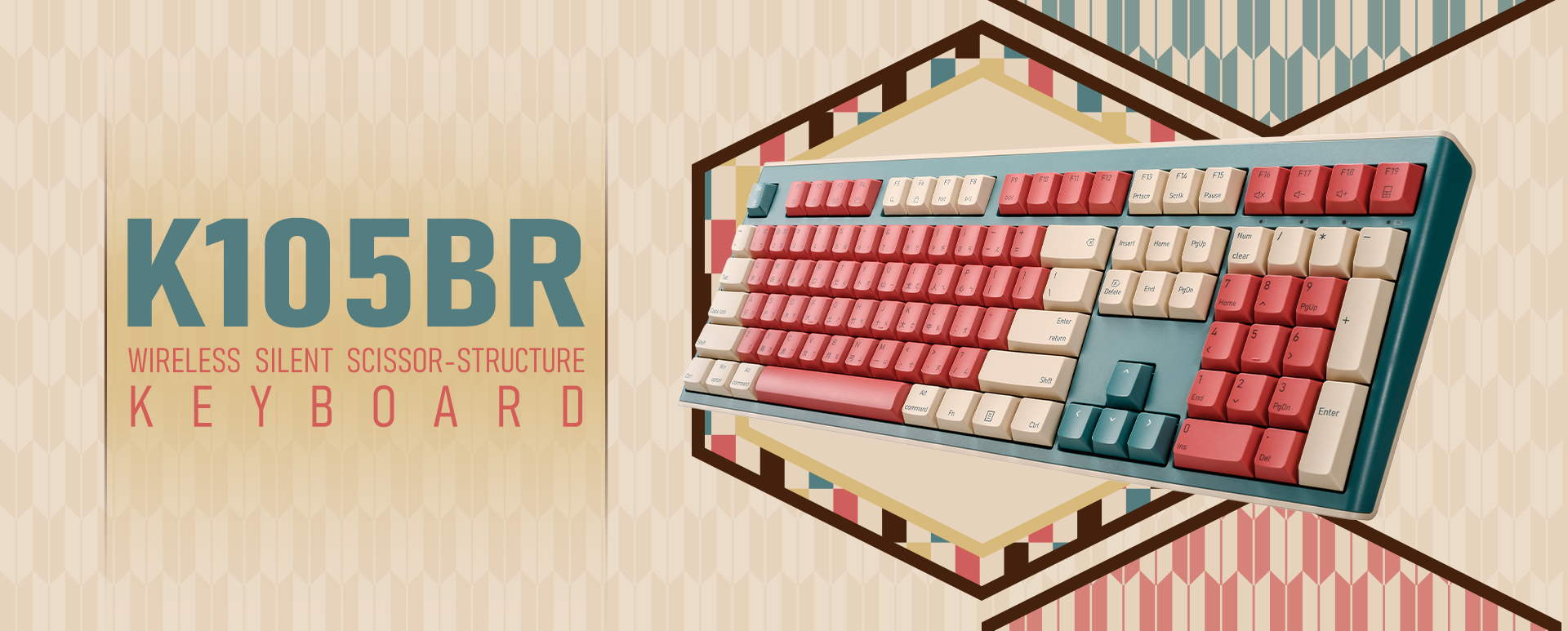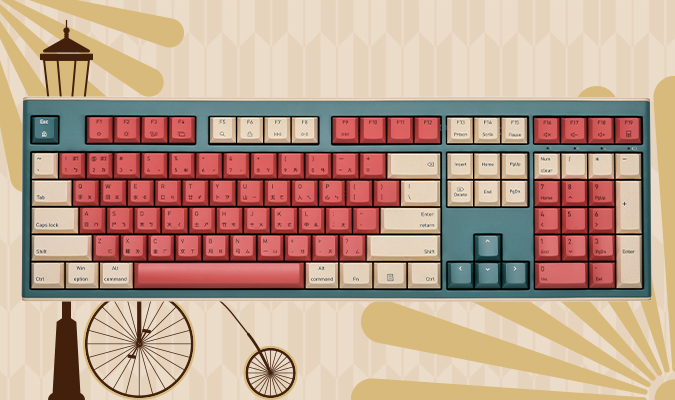 Red, Beige, and Teal. A bold design that blends vintage charm with modern style. It's the perfect way to make your desktop setup look unique and full of character.